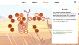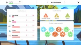 Boisko to interaktywny model kuli ziemskiej z mapą kontynentów. Proces gry sprowadza się do podejmowania decyzji w wielu kwestiach środowiskowych. Następnie spójrz na mapę. W przypadku problemów zobaczysz odpowiednie ikony i będziesz wiedział, gdzie interweniować w sytuacji. Problemy mogą być kilku rodzajów. Problemy z wodą pitną, kłusownictwo, zmiany klimatyczne i inne. Aby rozwiązać te problemy, wybierz niezbędne projekty środowiskowe i sponsoruj je, wydając na to punkty akcji.