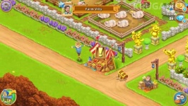 Wioska i farma zabawna farma na platformy mobilne. W grze zobaczysz jasną grafikę w kreskówkowym stylu. Muzyka jest dobrana tak, aby nawet w pochmurny, deszczowy dzień rozweselić.